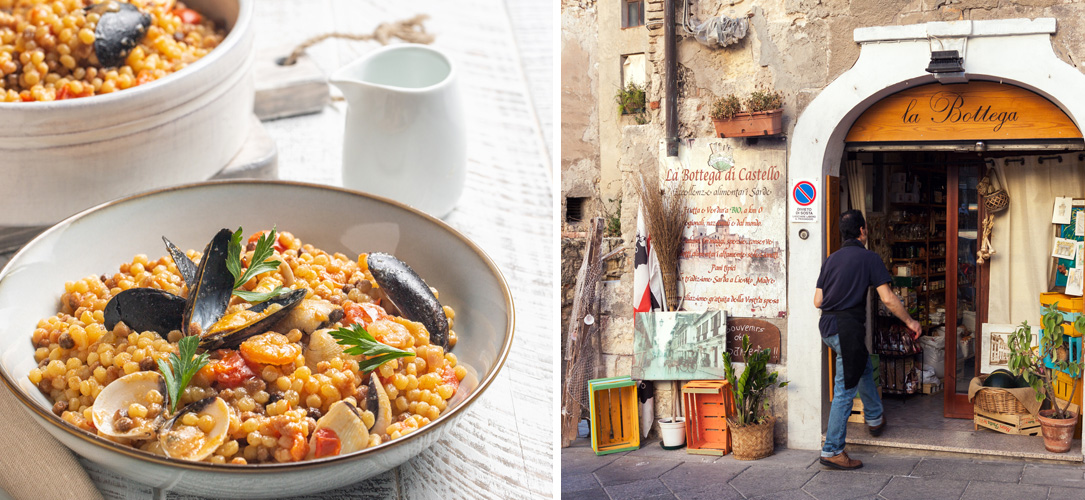 Food in Sardinia is inseparable from the place. Fregula, a pasta rolled into tiny grains by hand, is often served paired with fresh fish from nearby waters. Sheep graze freely across the island, and their milk becomes tangy pecorino, which seems to blend the salt of the sea with the delicate aromas of scrubby Mediterranean plants. Local wines, especially Cannonau di Sardegna, reflect the land itself-delicate, earthy, and quietly complex.