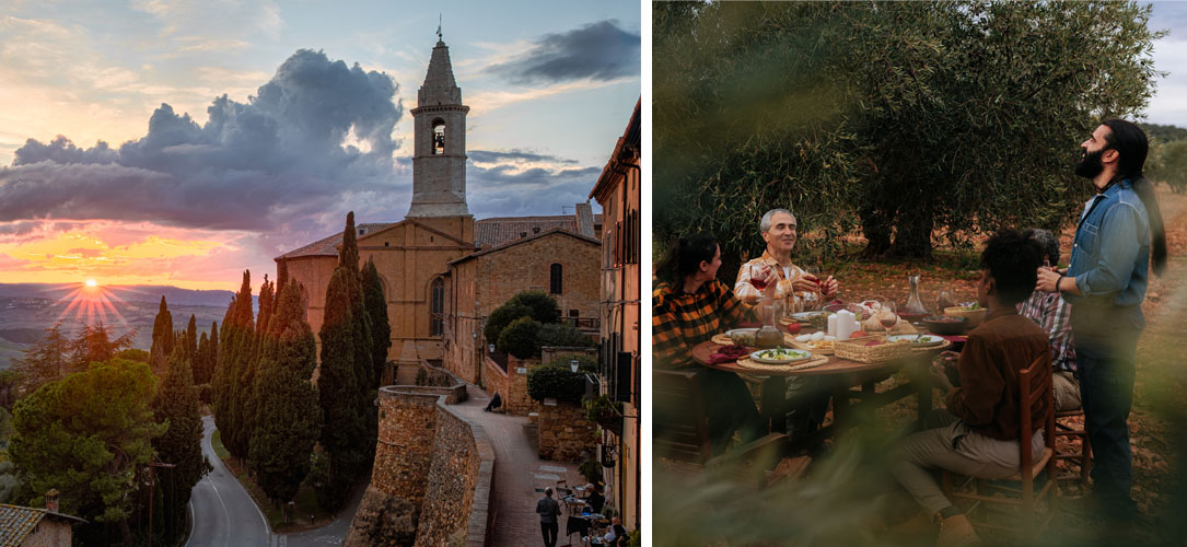 Tuscany: Pedal quiet roads lined with cypress trees and medieval hill towns before arriving at a Chianti Classico estate. Imagine savoring a glass of Brunello di Montalcino on a terrace overlooking the vineyards, where harvesters make their way up and down the lines of vines.